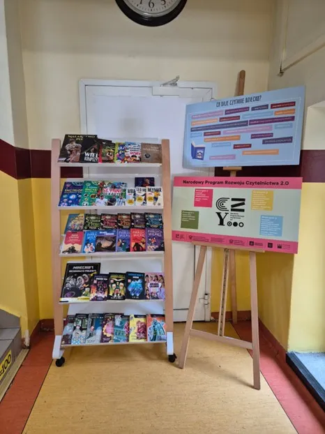 W 2025 r. nasza szkoła bierze udział w Narodowym Programie Rozwoju Czytelnictwa. Wspiera on zakup nowości wydawniczych oraz promuje czytelnictwo. Dzięki przyznanym środkom finansowym, nasza biblioteka wzbogaciła się o nowe książki. Zapraszam do sięgnięcia po ciekawe lektury! Każdy znajdzie coś dla siebie! W ramach programu zakupiliśmy również regał do prezentacji książek oraz banery związane z Narodowym Programem Rozwoju Czytelnictwa.